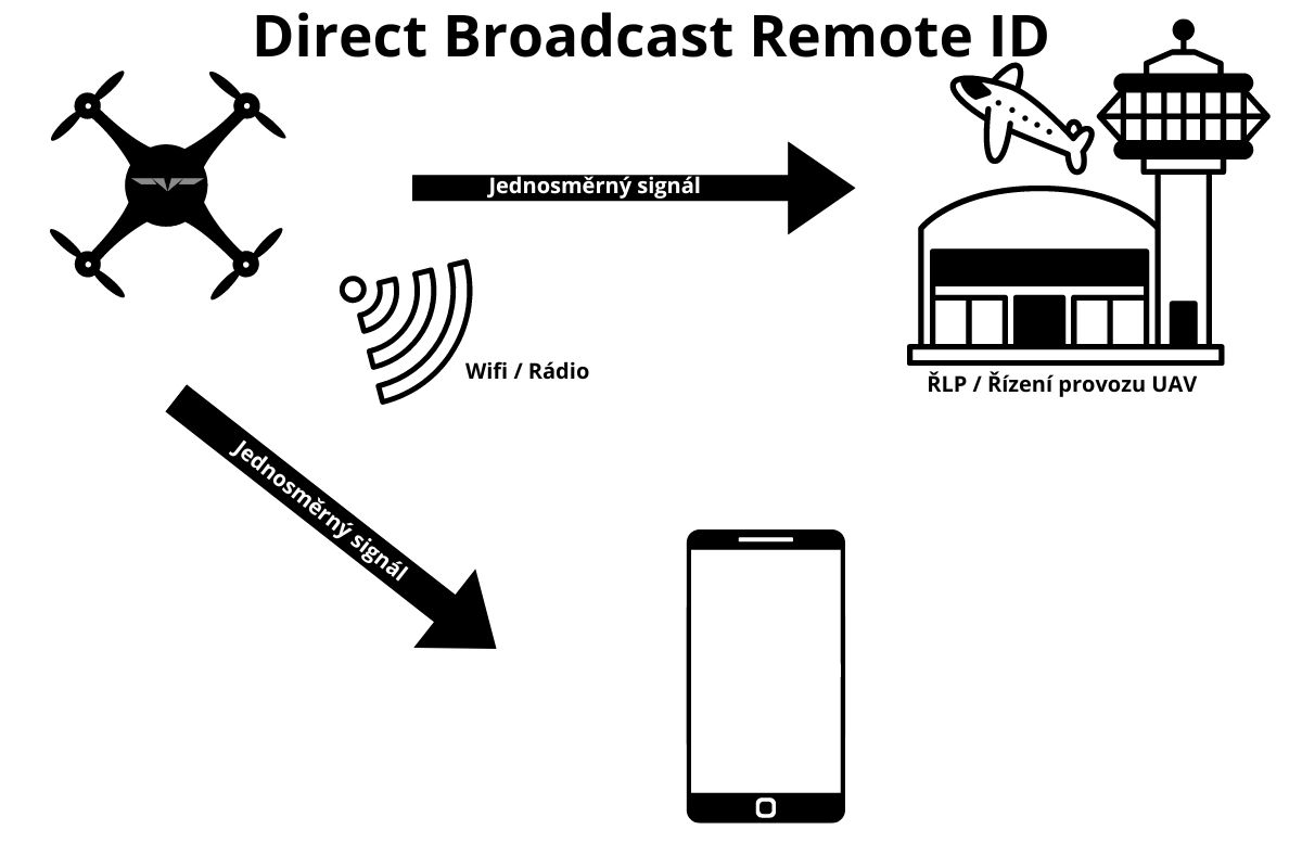 Direct Broadcast Remote ID je decentralizovaný systém a drony tříd C1, C2, C3 mají již tuto technologii od výroby zabudovanou.