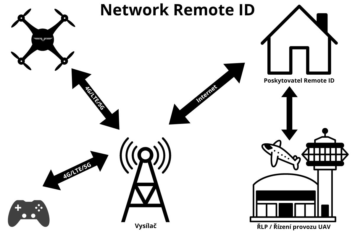To stejné bylo zavedeno pro drony s Remote ID. Dron vybaven tímto vzdáleným ID systémem vysílá v určitých intervalech informace o svém současném stavu a po předem definované cestě je posíla do centrálního místa nebo decentralizovanému subjektu.