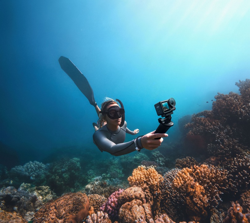 Odolné, vodotěsné tělo kamery vylepšuje vodotěsnost kamery Osmo Action. Je certifikováno podle normy EN13319, takže splňuje celosvětově uznávanou normu pro potápěčské příslušenství. Kameru stačí jen zapnout a můžete se potápět až do hloubky 20 metrů [13], a to bez nutnosti použití dalšího příslušenství.