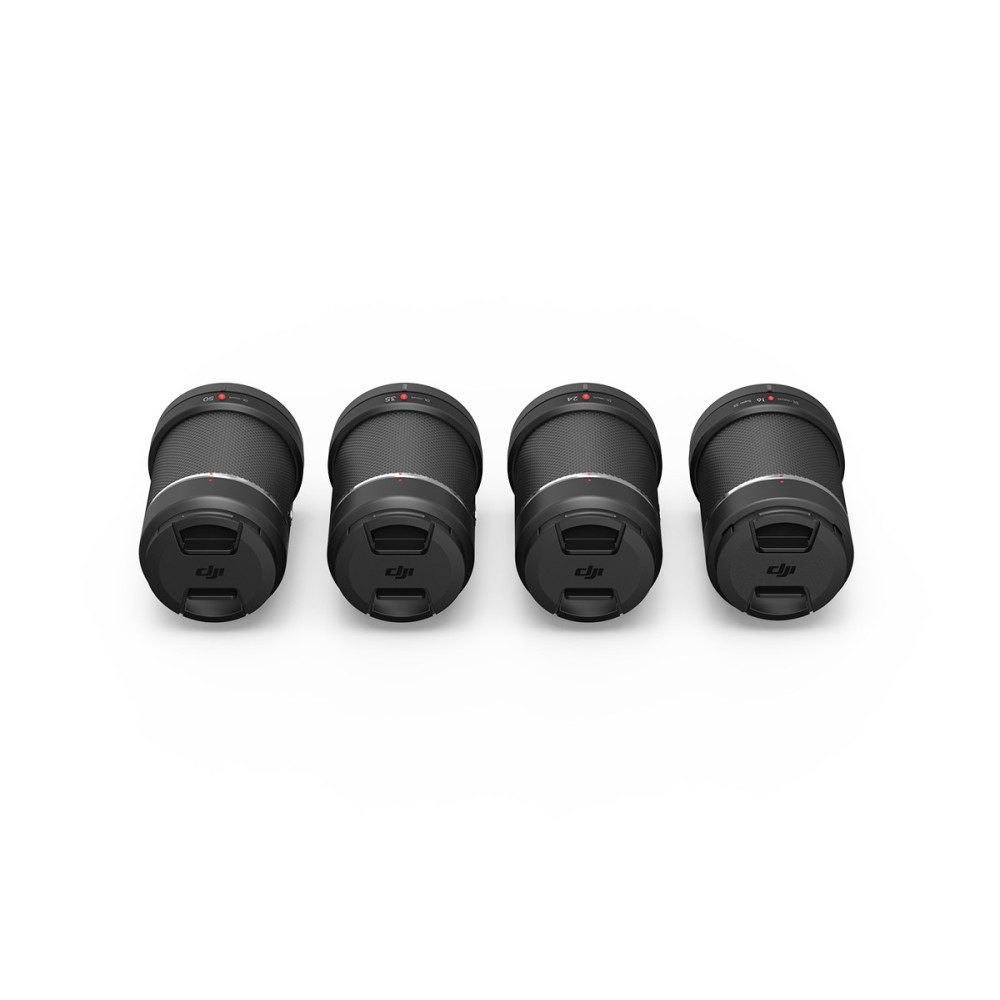 Sada profesionálních leteckých objektivů DJI řady DL/DL-S s asférickými členy, ohniskovými vzdálenostmi 16mm, 24mm, 35mm a 50mm a světelností F2.8. Objektivy jsou určeny pro kameru DJI Zenmuse X7.