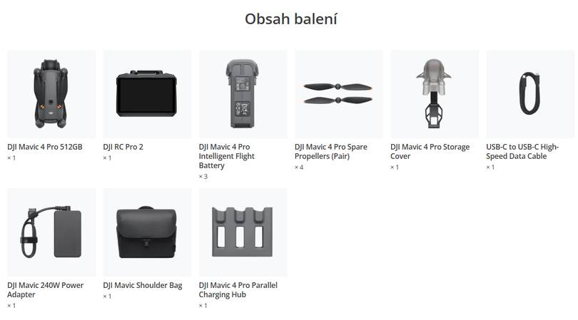 DJI Mavic 4 Pro je ve standardní výbavě osazen 64GB úložným modulem, což vám umožní okamžitě začít natáčet bez nutnosti externí paměťové karty.