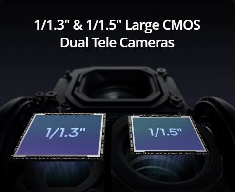 - 1/1.3″ a 1/1.5″ velké CMOS teleobjektivy