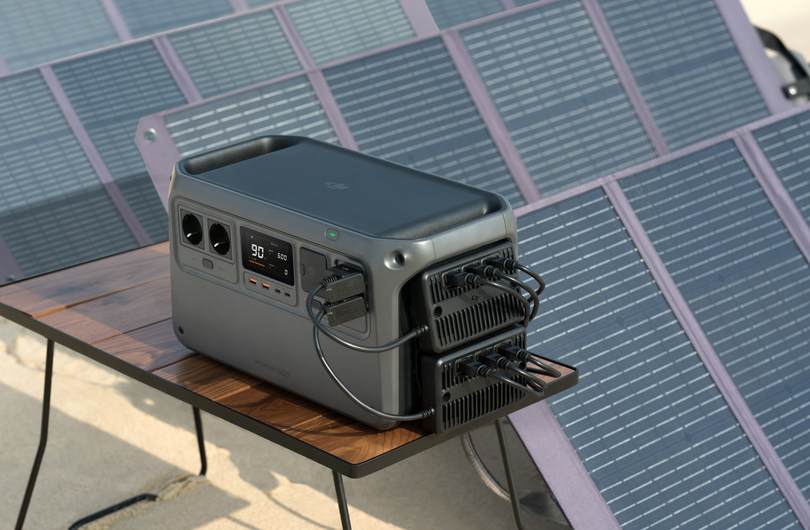 DJI Power 1000 lze připojit k solárním panelům prostřednictvím adaptéru DJI Power Solar Panel Adapter Module (MPPT) a dobíjet jej ekologicky šetrnou solární energií.